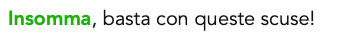 Qui usiamo insomma come esclamazione per esprimere rabbia e irritazione. Per esempio se un genitore a casa mentre sta aspettando il figlio vede che lui arriva in ritardo e inventa delle bugie, può dire “basta con queste scuse” preceduto da insomma per enfatizzare la sua rabbia!