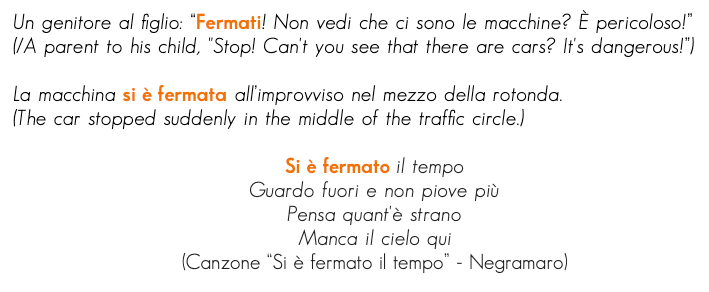Whether you’re stopping a car (fermi la macchina), pausing your own movement (ti fermi) or ceasing an activity (smetti di fare qualcosa), knowing which verb to use will enhance your fluency and precision in Italian.