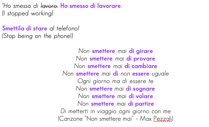 I often read interesting articles that I already know I would like to re-read later and after a few days, so I print it out or put it on my Ipad because I find it inconvenient to read on the computer. If maybe you do too, I’ll leave you the PDF Summary Table of this article and a couple of exercises (with solutions), so you can practice using “fermare,” “fermarsi,” “smettere”