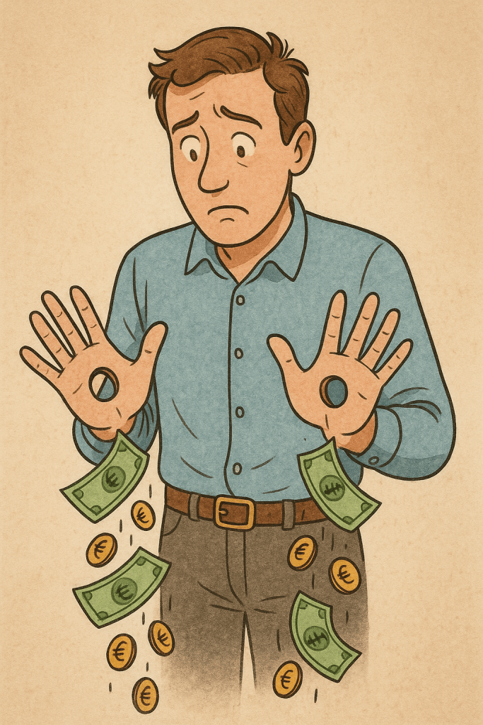 Significato: Spendere denaro facilmente o senza controllo, si riferisce a chi non riesce a trattenere i soldi, come se questi “scivolassero via” attraverso buchi immaginari nelle mani..